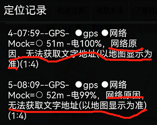 员工关闭手机网络,导致系统无法联网,也会产生这个情况。但因为手机无信号也是常有的,所以,这个要认定为员工关网络也有问题。所以,出现这种情况就不要计较了,以定位成功对待(只是管理人员改变习惯,多看地图上的定位轨迹,不要依赖文字信息了)。